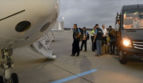 (Pasukan IAEA menaiki pesawat di Lapangan Terbang Antarabangsa Vienna di Schwechat, Austria,