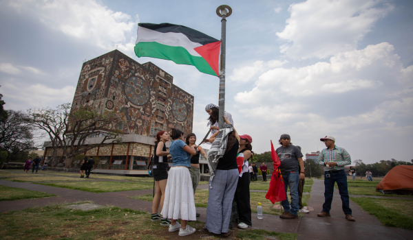 Mereka memasang khemah dan menaikkan bendera Palestin di hadapan ibu pejabat Universiti Autonomi Kebangsaan Mexico (UNAM) di Mexico.