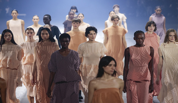 (Model mempersembahkan rekaan terbaharu untuk pertunjukan fesyen Issey Miyake Spring-Summer 2023