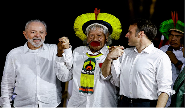 Presiden Brazil Lula memulakan penggal ketiganya pada 1 Januari 2023 berganding bahu bersama-sama pemimpin Orang Asli Brazil yang paling terkenal, Kayapo Raoni Metuktire.