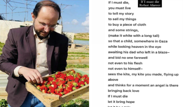 “Hati saya hancur, sahabat dan teman, Refaat Alareer terbunuh bersama ahli keluarga beberapa minit lalu”, tulis rakannya, yang juga penyair Gaza, Mosab Abu Toha di Facebook.