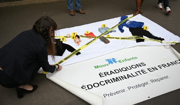 Pertubuhan Mouv’Enfants turut mengadakan protes di depan BHV mendesak syarikat itu bertanggungjawab secara politik dan moral. – AFP