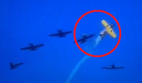Video yang dirakam oleh penonton dan disiarkan di media sosial menunjukkan pembentukan enam pesawat di udara, dengan salah satu daripadanya naik, merempuh sebuah pesawat sebelum terhempas ke tanah.