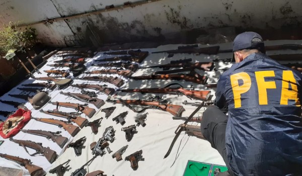Menurut laporan polis persekutuan Argentina, polis merampas lebih daripada 60 senjata api dari rumah lelaki tersebut termasuk 43 senapang yang terukir dengan tanda helang Nazi, 15 pistol, lima pisau bayonet dan sebuah senapang mesin.