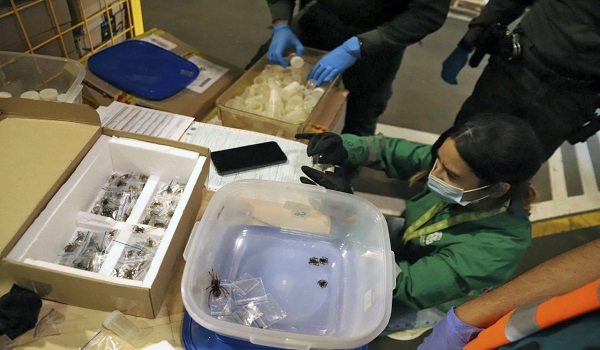 Labah-labah itu telah disimpan dalam beg plastik di dalam pesawat kargo, kata Sekretariat Alam Sekitar Bogota dalam satu kenyataan.