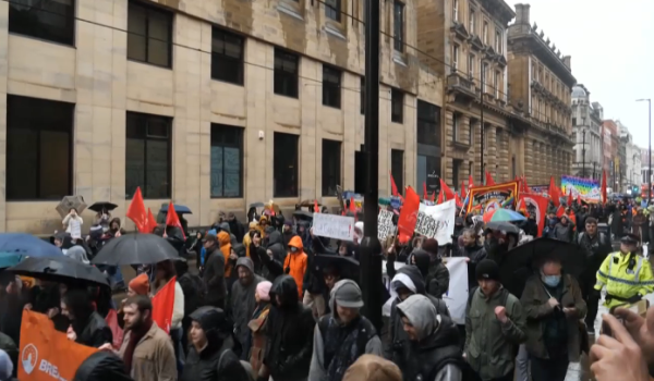 MANCHESTER, 15 Februari – Ratusan rakyat di United Kingdom berarak di seluruh bandar negara itu, membantah kenaikan kos sara hidup dan pengumuman kerajaan menaikkan bil elektrik.