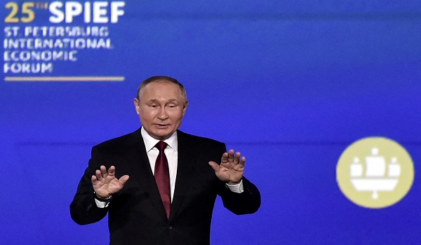 (Vladimir Putin menghadiri sesi pleno Forum Ekonomi Antarabangsa Saint Petersburg (SPIEF) di Saint Petersburg/AFP)