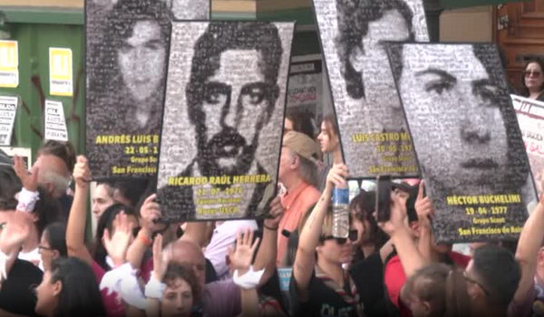 Penunjuk perasaan berkumpul di tengah-tengah Plaza de Mayo dengan memegang foto mereka yang hilang semasa pemerintahan tersebut sambil menuntut keadilan buat mangsa.