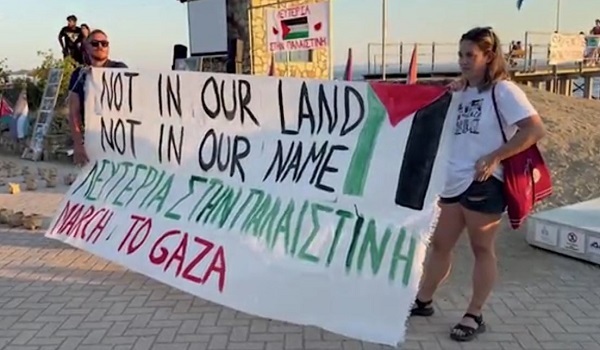 Di lokasi pelancongan popular Halkidiki, para penunjuk perasaan mengibarkan bendera Palestin dan membawa sepanduk yang tertera ayat “Hentikan pembunuhan beramai-ramai” dan “Tiada lagi pertumpahan darah di Gaza”.