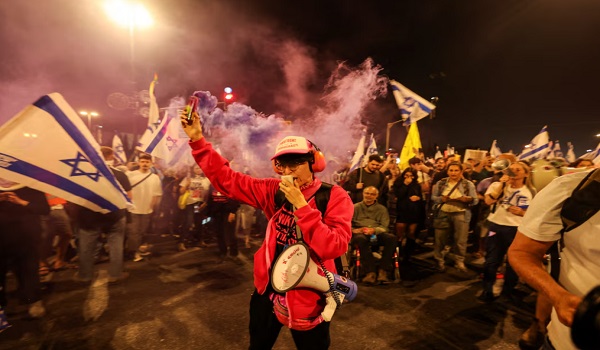 Ketua pembangkang Yair Lapid mengkritik keras Netanyahu pada demonstrasi itu.