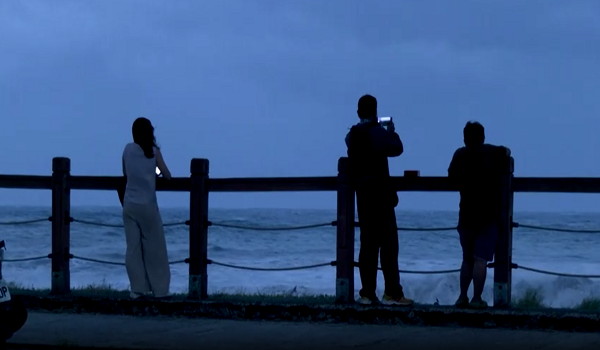 Pengunjung di pantai mengambil gambar ombak tinggi yang menandakan akan berlakunya ribut, sementara segelintir penduduk lain memilih untuk berada di kawasan bandar.