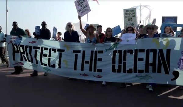 Mereka melaungkan slogan serta membawa sepanduk yang mengecam aktiviti seperti penangkapan ikan dasar (bottom trawling), dengan Laut Mediterranean sebagai latar belakang.