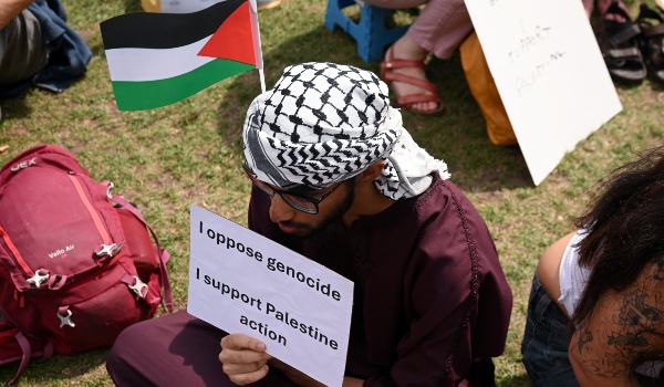 Ketegangan berlaku apabila peserta pro-Israel cuba merampas plakad kumpulan pro-Palestin sehingga mencetuskan perbalahan dengan polis.
