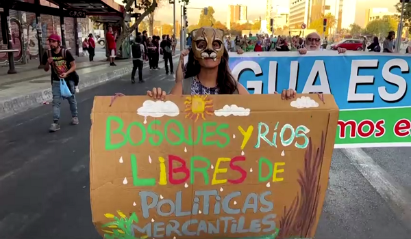 SANTIAGO, 23 Mac- Ratusan rakyat Chile berarak sempena Hari Air Sedunia bagi menuntut akses kepada air yang adil untuk semua pihak.