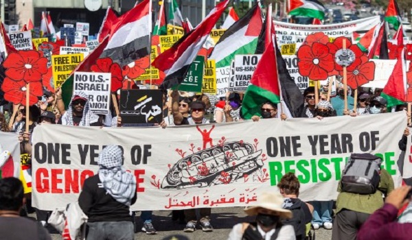 LONDON, 6 Oktober– Ribuan penunjuk perasaan berarak di bandar-bandar utama di seluruh dunia pada Sabtu bagi memperingati setahun serangan ganas Israel di Gaza, esok dan menggesa gencatan senjata segera di wilayah itu dan Lubnan.