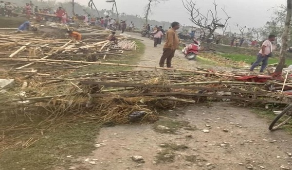 “Ribut melanda. Dalam masa dua-tiga minit, banyak rumah rosak. Lima mangsa maut dan dua orang cedera parah,” kata Ketua Menteri Bengal Barat, Mamata Banerjee, yang melawat kawasan itu pada malam Ahad.