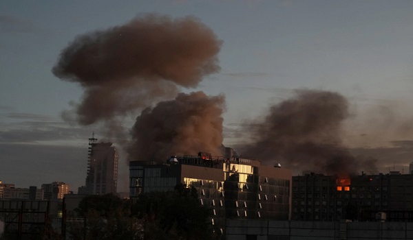 Seorang pegawai di pejabat presiden Ukraine berkata tiga orang terbunuh dalam serangan ke atas sebuah bangunan kediaman di Kyiv. Asap hitam keluar dari tingkap bangunan yang diletupkan dan pekerja perkhidmatan kecemasan bertungkus-lumus memadamkan api.
