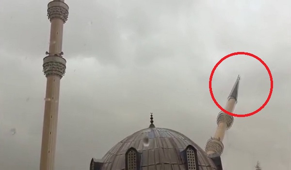 Rakaman video yang dikongsi saksi menunjukkan kejadian melibatkan satu daripada dua menara di Masjid Bademlik di sini.