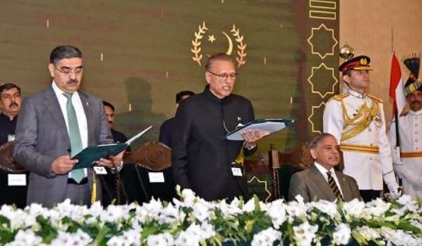 (Anwaar-ul-Haq Kakar mengangkat sumpah sebagai perdana menteri sementara oleh Presiden