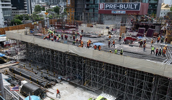 (Pekerja di tapak pembinaan di kawasan Sukhumvit di Bangkok/AFP)