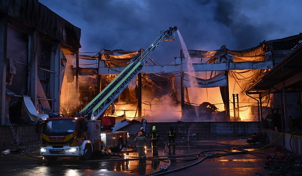 Perkhidmatan kecemasan turut berkongsi gambar anggota bomba memadam kebakaran di daerah Desnyansky dan Darnytsky.