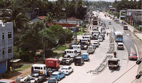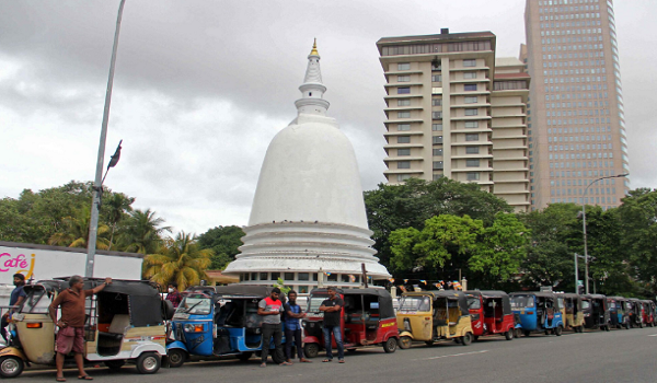 (Orang ramai menunggu giliran untuk mendapatkan bekalan petrol dan diesel di Colombo/REUTERS)