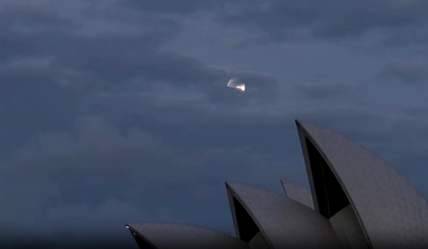 Orang ramai dapat melihat bulan bersinar penuh di Sydney Opera House meskipun sebahagiannya telah dikaburkan awan.