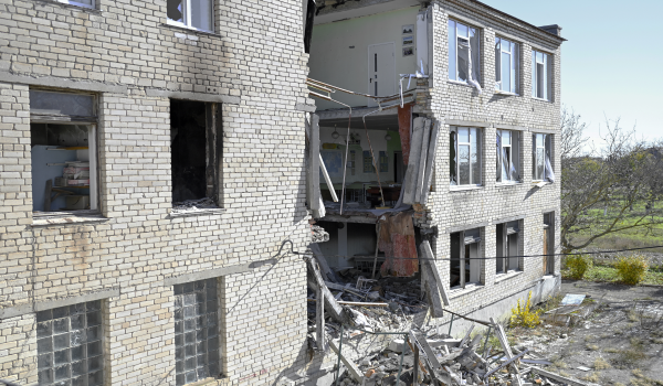 sekolah yang musnah di kampung, di luar Mykolaiv, selatan Ukraine/Foto AFP)