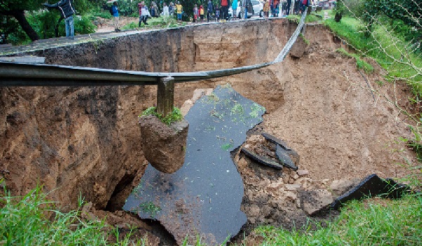 (Jalan runtuh disebabkan air banjir akibat hujan lebat berikutan taufan Freddy