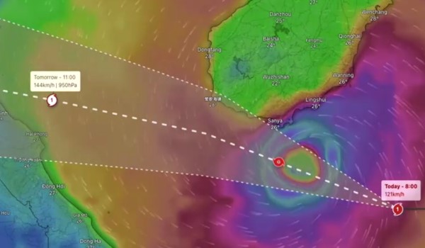 Pusat Meteorologi Negara China (NMC) memaklumkan ribut tersebut berkemungkinan membadai pesisir selatan wilayah pulau Hainan dari petang hingga malam Ahad atau bergerak menyusuri pantai selatan sebelum menuju ke Vietnam.- REUTERS