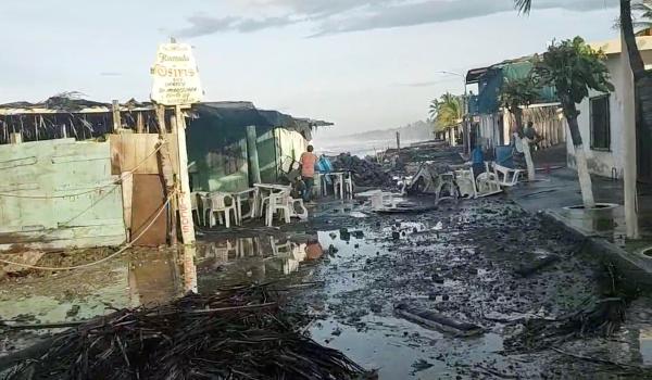 (Kerosakan disebabkan ombak kuat dibawa Taufan Kay di El Paraiso, Colima Mexico pada 6 September 2022/REUTERS)