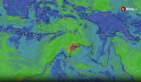 Imej radar cuaca menunjukkan taufan itu berlegar di sekitar Darwin, dengan penduduk setempat diminta segera melakukan persiapan, terutama mengikat bot dan melindungi harta benda.