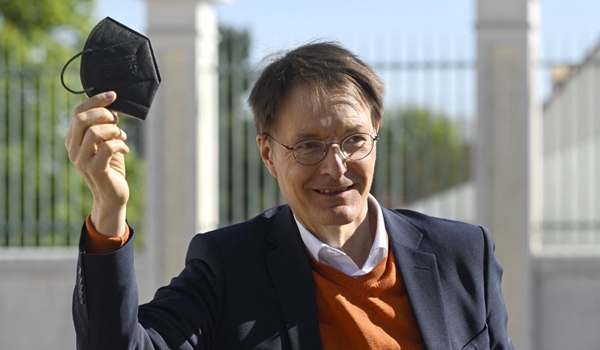 (Menteri Kesihatan, Karl Lauterbach, memegang pelitup muka ketika menghadiri mesyuarat Kabinet khas