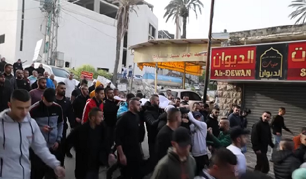 (Penduduk Jenin berarak mengusung mangsa yang terkorban ke pengebumian / Foto AFP)
