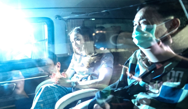 Wartawan REUTERS melihat Thaksin dalam sebuah van Mercedes berwarna hitam, memakai baju hijau dan pelitup muka, duduk di sebelah anak perempuannya, Paetongtarn Shinawatra, sebelum konvoi kenderaan meninggalkan hospital.- REUTERS