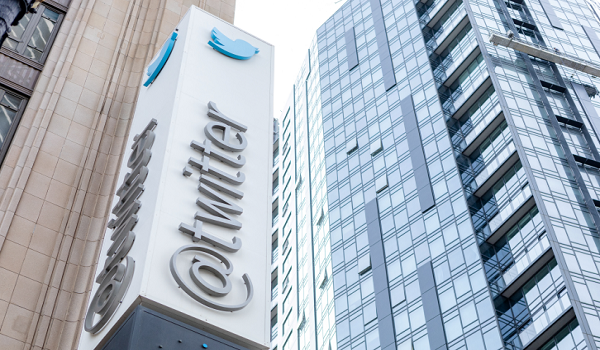 Logo Twitter disiarkan di bahagian luar ibu pejabat Twitter / FOTO AFP
