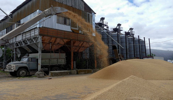 (Sebuah trak dilihat di terminal bijirin semasa penuaian barli di wilayah Odesa, ketika