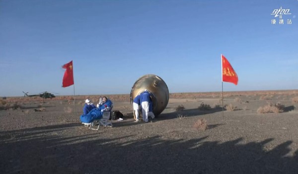 Menurut penyiar CCTV, Jing Haipeng, Zhu Yangzhu dan Gui Haichao mendarat di tapak pendaratan Dongfeng China pada pukul 8.11 pagi.