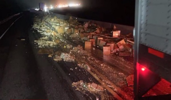 Pasukan Peronda Negeri Washington (WSP) Rick Johnson berkongsi video kamera pemuka dari trak separuh membawa telur pada X pagi Selasa.