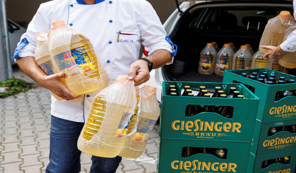 Pelanggan Moritz Baller membeli 80 liter minyak bunga matahari di Ukraine semasa perjalanan untuk menyampaikan bantuan kemanusiaan, menukar penghantarannya dengan lapan peti bir untuk parti hari jadinya.
