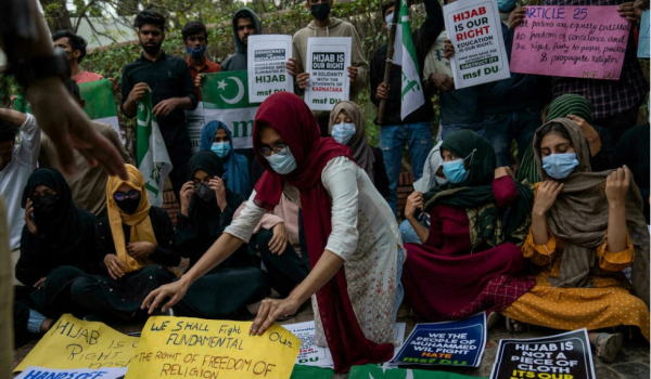 KARNATAKA, 10 Februari- Susulan larangan berhijab oleh beberapa institusi pendidikan di selatan Karnataka, India, satu tunjuk perasaan diadakan di seluruh negara itu, semalam.