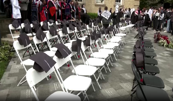 TORONTO, 4 Jun – Pelajar dan fakulti di Universiti Toronto mengadakan majlis memperingati rakyat Palestin yang terbunuh dalam serangan rejim Israel keatas negara itu, pada hari graduasi universiti itu.