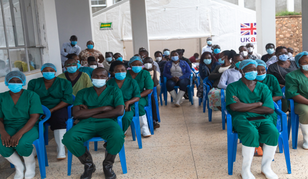 pengasingan menghadiri taklimat di hospital rujukan Mubende, Mubende, Uganda/Foto AFP)