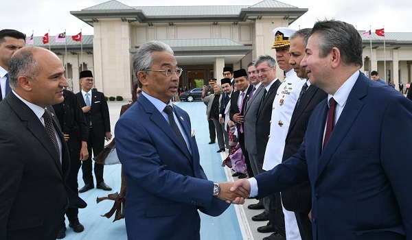 Ketibaan Seri Paduka dan Raja Permaisuri Agong Tunku Hajah Azizah Ainah Maimunah Iskandariah di Terminal Lapangan Terbang Antarbangsa Istanbul disambut Timbalan Menteri Luar Turkiye, Sedat Onal dan Duta Besar Malaysia ke Turkiye, Salim Mustafa Kamal.