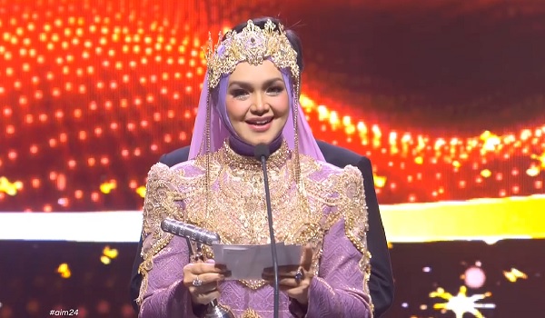 GENTING HIGHLANDS, 14 September - Biduanita negara, Datuk Seri Siti Nurhaliza menerima Anugerah Sri Wirama pada Anugerah Industri Muzik ke-24 (AIM24).