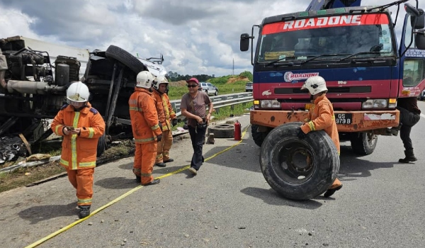A Sarawak Fire and Rescue Department (JBPM) spokesperson said the victim, identified as Derald Suggin, 36, was the lorry’s attendant.