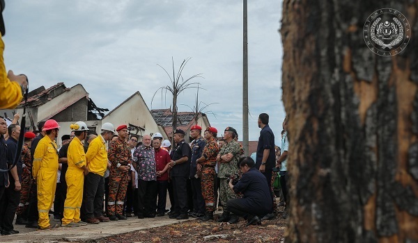 His Majesty was then briefed for nearly 30 minutes regarding the incident by the Selangor Police Chief, Datuk Hussein Omar Khan, before departing to survey the location of the incident.