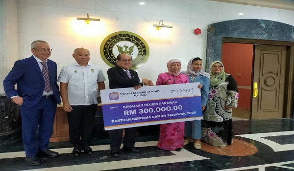 KUCHING, Feb 13– The National Welfare Foundation (YKN) has donated RM300,000 to the Sarawak State government to support residents affected by recent floods in the state.
