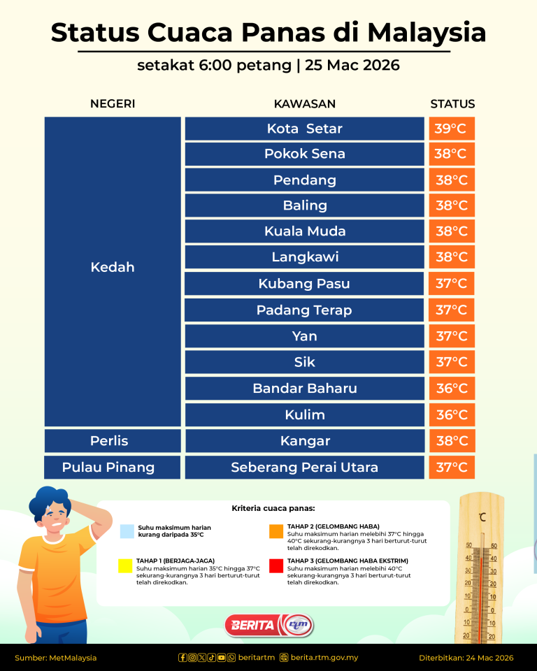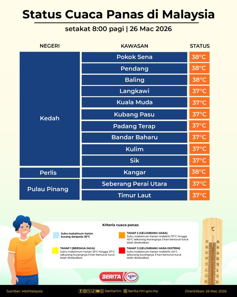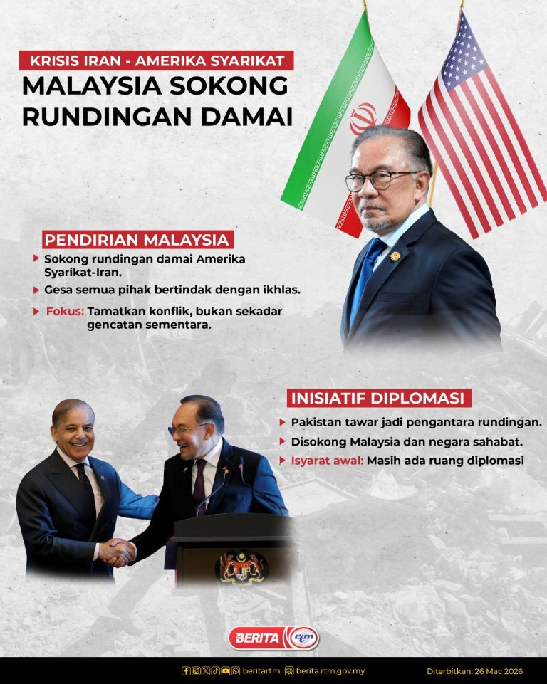Presiden Mesir janji permudah akses bantuan Malaysia ke Gaza – PM AnwarRibuan penunjuk perasaan sertai protes bantah serangan AS-Israel terhadap IranPelaksanaan BDR perlu seimbang dengan sistem giliran – PakarBDR perkukuh literasi digital, jimat tenagaOP Khas Hari Raya Aidilfitri 2026: JPJ Pulau Pinang keluar 2,724 samanLori treler terbalik, halang laluan di Gua Musang–JeliMotoGP AS: Martin dinobatkan juara perlumbaan pecutCuaca panas: 507 sekolah di Terengganu diarah sedia bekalan air mencukupiMesir beri jaminan laluan bantuan Malaysia ke GazaPembiayaan khas BARAKAT dan BERKAT sempena Ramadan dan Tahun Baharu Cina