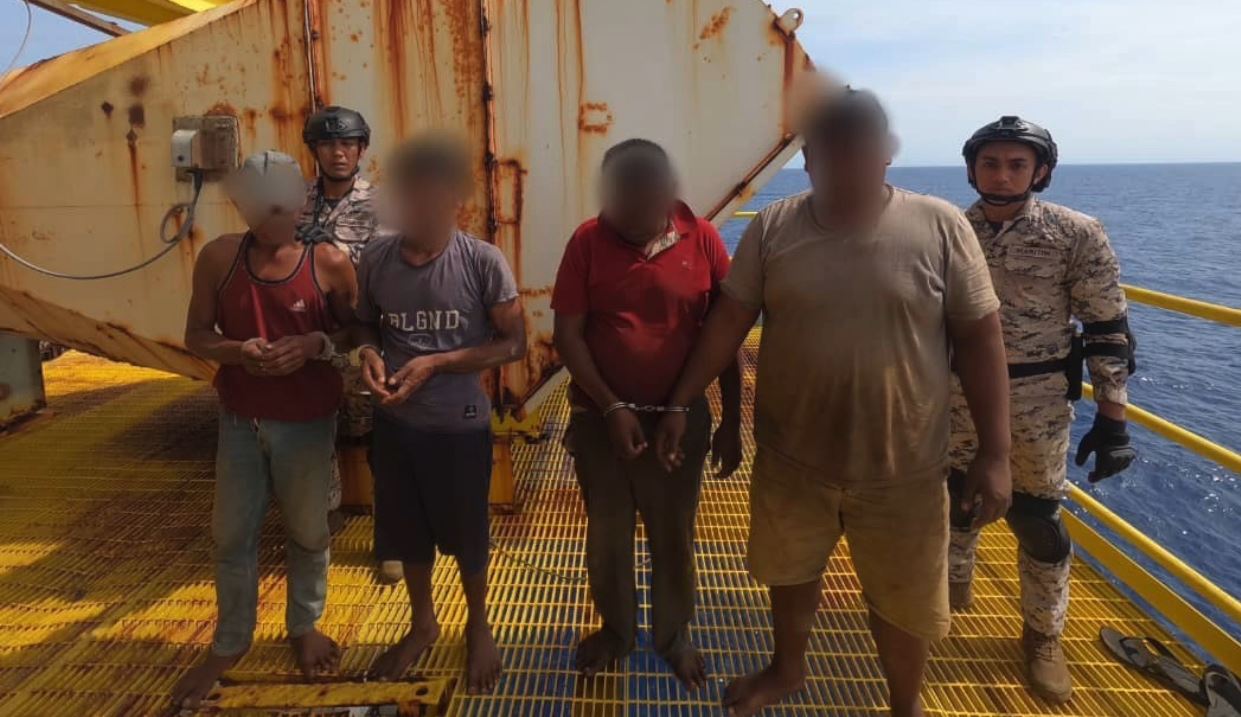 KEMAMAN, 4 November - Empat lelaki warga Indonesia diberkas Agensi Penguatkuasaan Maritim Malaysia (Maritim Malaysia) selepas menceroboh sebuah pelantar minyak tidak berpenghuni di perairan Terengganu.
